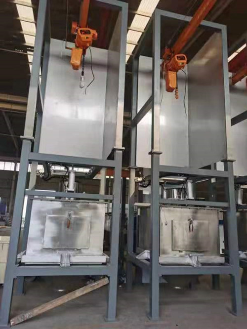 噸包投料站又稱噸袋拆包機(jī),是用來實(shí)現(xiàn)袋裝散裝物料的卸料功能,為半自動(dòng)操作。包裝袋由電動(dòng)葫蘆提升,包裝袋的袋繩掛在鋼性支架上,手動(dòng)操作控制葫蘆升降和行走,沿著行走導(dǎo)軌運(yùn)行到卸料區(qū)上方落下,將包裝袋放置在支架托盤上,使大袋處于卸料位置。然后手動(dòng)打開卸料閥操作門,人工將包裝袋的卸料口拉入到卸料閥的系口出,按下系帶按鈕,卸料閥束緊氣缸將袋口鎖緊,再手動(dòng)將大袋的卸料口從卸料位置拉下,罩在卸料口密封箱內(nèi)的出料管外側(cè),按下壓袋機(jī)構(gòu)氣動(dòng)控制開關(guān),使密封法蘭下降,并緊壓在出料管的管端,密封卸料通道,以防卸料過程中粉塵漏,接著,人工解袋,最后,關(guān)上操作門。手動(dòng)開啟與卸料口密封箱連接的通風(fēng)除塵管道上的閥門。至此,卸料準(zhǔn)備過程結(jié)束。