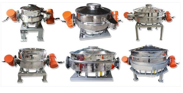 直排篩的作用原理是振動電機軸上下端的兩組偏心塊(不平衡偏心塊),將振動電機的旋轉運動變為水平、垂直、傾斜以及離心作用的多作用力重疊,再將這種作用力傳遞給篩面。改變上下偏心塊的相位角和可以改變激振力的大小和物料的運動軌跡。