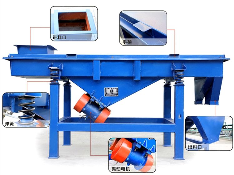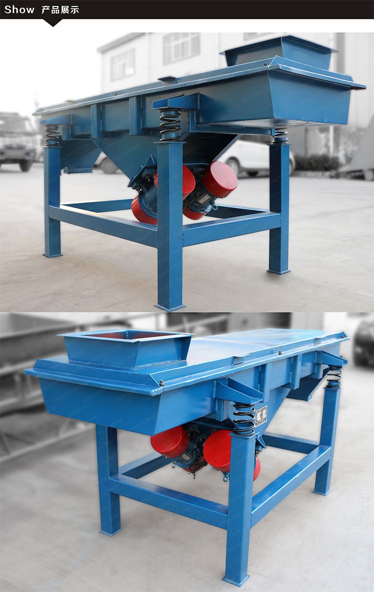 是以利用振動(dòng)電機(jī)激振作為振動(dòng)源,使物料在篩網(wǎng)上被拋起,同時(shí)受力向前做直線規(guī)則運(yùn)動(dòng),物料從給料機(jī)均勻地進(jìn)入篩分機(jī)的進(jìn)料口,通過(guò)多層篩網(wǎng)產(chǎn)生數(shù)種規(guī)格的篩上物、篩下物、從各自的出口排出。具有耗能低、產(chǎn)量高、結(jié)構(gòu)簡(jiǎn)單、易維修、全封閉結(jié)構(gòu),無(wú)粉塵溢散,自動(dòng)排料, 更適合于高產(chǎn)能流水線作業(yè)。